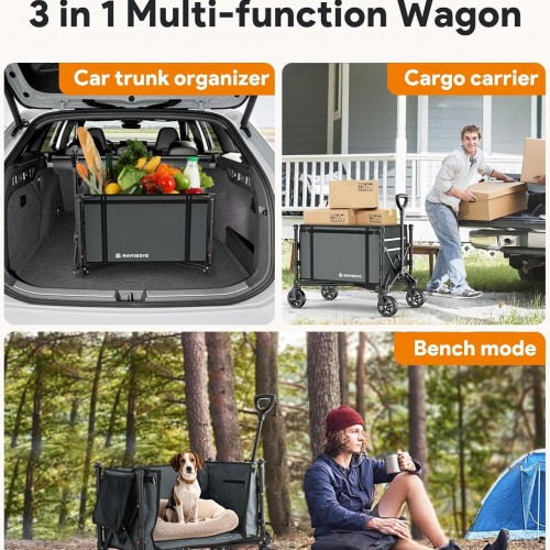 - 【Ideal Choice for Outdoor Life】The multifunctional collapsible cart can help you simplify the transportation of heavy objects and reduce your transportation burden. Utility wagon is an ideal tool for carrying various necessities, such as groceries, camping equipment, and daily necessities. Suitable for shopping, handling, camping, etc, and can also be used as a pet wagon.