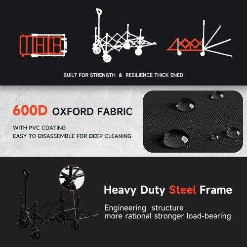 Collapsible Wagon Cart with Wheels Foldable,Folding Beach Wagons Carts Foldable for Grocery Shopping Camping Garden Fishing Sports