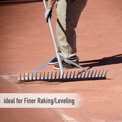 - LIGHT AND MIGHTY LANDSCAPE RAKE — this 24’’ landscape rake is made of professional grade high-quality aluminum. All solid aluminum head and handle are sturdy, durable, and rustproof, which will last throughout the seasons.