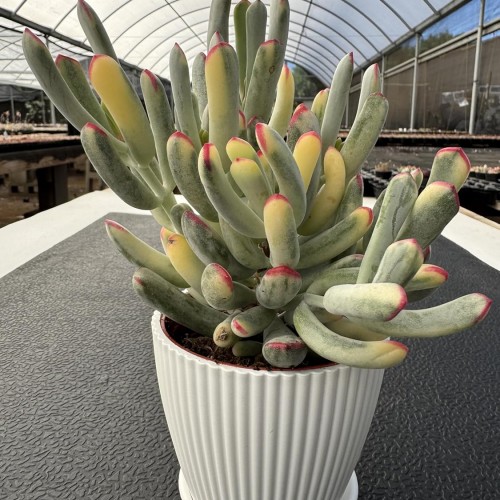 - Easy to Care – As a drought-tolerant succulent, the Cotyledon Orbiculata cv.long Leaf Variegated doesn’t require a lot of water, so you don’t have to water it as often, usually only once a week in mild hot weather and biweekly in colder months. You can wait for the soil to dry before watering, being careful not to leave water in the bottom tray