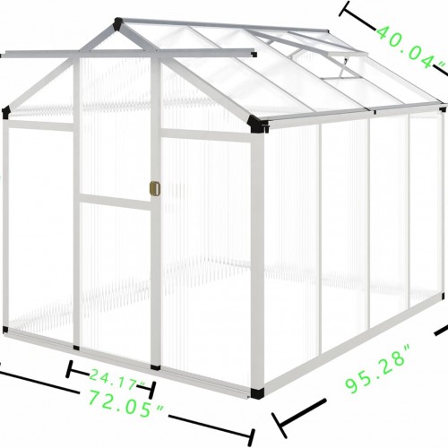 - QUALITY DESIGN: Our greenhouse measures 6×8 ft, with a roof (including gutter) of 6.2×8 ft, providing a coverage area of 48 sq ft and weighing 57.86 lbs. Very easy to access with its Sliding door. Seal it off completely when not in use. Designed for indoor or outdoor use. Very easy to install with simple instructions. Innovative and flexible, install it in your garden, patio, deck, or yard.The color is Silver.