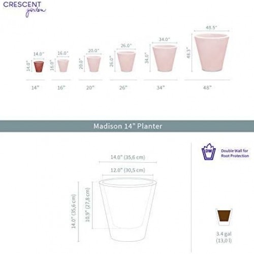 Crescent Garden Madison Planter– Weather-Resistant, Double Walled Indoor/Outdoor Plant Pot with Drain Hole – Durable All-Season Flower Container, 14″ W (Caviar Black)