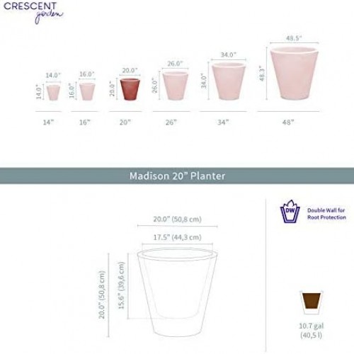 Crescent Garden Madison Planter– Weather-Resistant, Double Walled Indoor/Outdoor Plant Pot with Drain Hole – Durable All-Season Plastic Flower Container, 20″ W (Terracotta-Colored)
