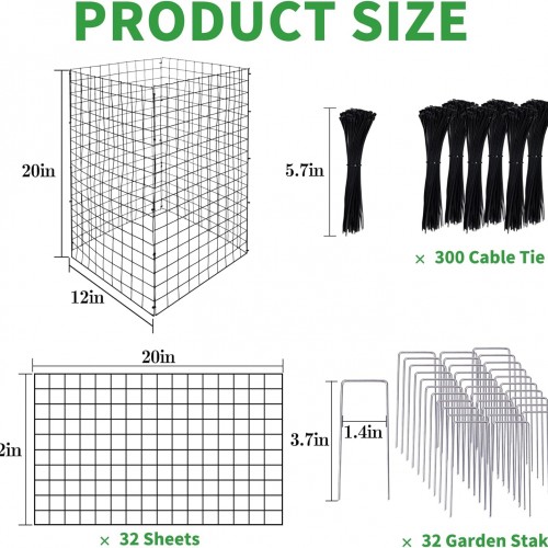 - Packaging Includes: You will receive 32 pcs metal mesh, the size is 12 x 20 inch, every 4 pcs metal mesh can form a plant cage, a total of 8 sets of plant cages, come with 32 ground stakes and 300 cable ties, enough to meet your use needs.