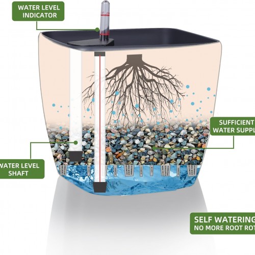 Dexceder 18×17 Self Watering Planter with Wheels Indoor Outdoor, Inner Mat Design, Thickened Large Floor Standing Flower Plant Pot with Water Level Indicator (Slate Gray Matte)