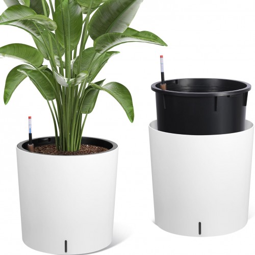 Dexceder 9×8 Self Watering Planters Indoor, Inner Mat Design, Table Flower Plant Pot with Water Level Indicator (2 Pack, White)