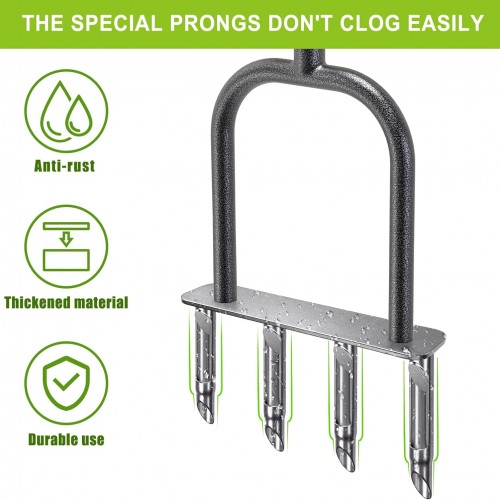 - 4-Plugs Design and Anti-clogging Function: This manual aerator lawn tool designed with 4 holes and each hole is semi-open to prevent soil clogging, this tool saves time and effort with a simple, efficient lawn coring tool.