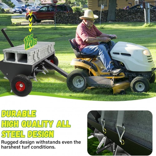 Doniks 48-Inch Tow Behind Lawn Plug Aerator with Universal Hitch, Lawn Aerator Tow Behind with 30 Galvanised Steel Tines,Tray and Inflatable Wheels for Gardens, Lawns, Farms
