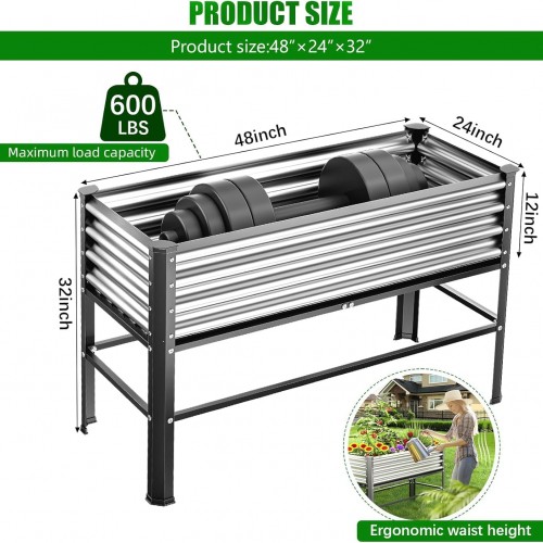 - 【Distinctive Design】-Outdoor elevated garden beds, our custom design style features galvanized sheet metal on the top, a stainless steel frame on the middle base, and the lower four corners are made of heavy-duty steel with a black powder-coated finish,This combination exceeds the lifespan of wooden products and ensures excellent rust resistance to keep the garden bed in the best condition for a long time.