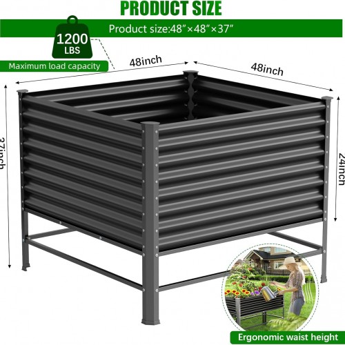 - 【Spacious Planting Space】-Our raised garden bed with legs measures 48x48x37 inches, 240 gallons, 1200LB capacity.To enhance safety and prevent any potential discomfort, we’ve added protective pads to the four corners both above and below the raised garden bed. These pads not only effectively safeguard against sharp corners that may poke individuals but also provide protection for your floors by preventing scratches.