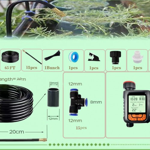 Drip Irrigation Kit Automatic Watering System for Potted Plants, 360 Degree Adjustable Copper Micro Sprinklers, Quick Connect Tubing Fittings for Garden, Lawn, Patio, Balcony(Timer Ⅱ)