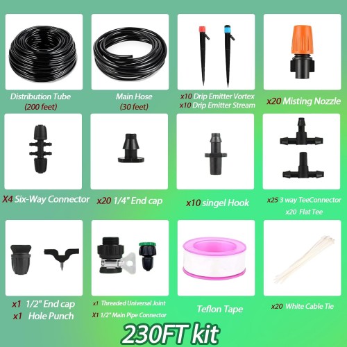 Drip Irrigation System – Irrigation System for Garden w/ 1/4″ & 1/2″ Fast-Lock Tubing – Adjustable Nozzles & Sprinklers Garden Watering System (230FT Kits)
