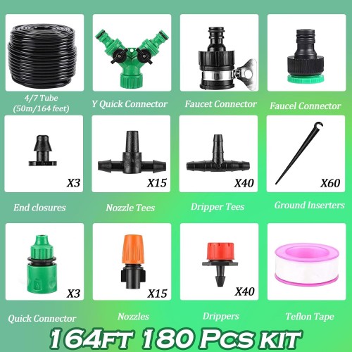 - Size : 164FT of Automatic Drip Irrigation Kits