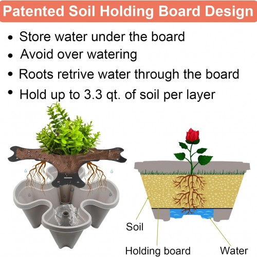 - RIGHT SOIL MOISTURE – A small amount of water is kept under the soil holding board to maintain the soil at the right moisture level.