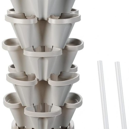 DUNCHATY Stackable Planters 4 Tier Vertical Garden Planting Tower Planters Strawberry, Herb, Flower, and Vegetable Planter Indoor Outdoor Gardening Pots with Removable Wheels and Tools, 2 Bundle