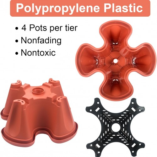 DUNCHATY Stackable Planters 4 Tier Vertical Garden Planting Tower Planters Strawberry, Herb, Flower, and Vegetable Planter Indoor Outdoor Gardening Pots with Removable Wheels and Tools