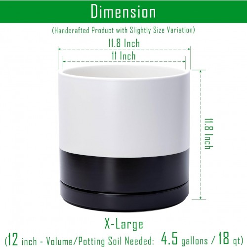 - Multiple Size Options: Available in six sizes (3.5″ to 11.8″) to fit plants of all types, from small succulents to larger houseplants. X-Large 12 Inch Planter Pot: 11.8″ Diameter x 11.8″ H, Potting Soil Needed: 4.5 gallons / 17 qt.