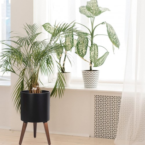 D’vine Dev 12 Inch Planter Pot with Stand, Mid-Century Tall Plant Pot with Legs for Indoor Plants, Large, Black, 88-O-C-2