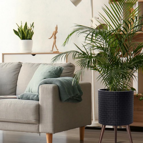 D’vine Dev 14 Inch Modern Geometric Tile Patterned Sleek Planter Pot with Stand, Indoor Outdoor Decorative Plant Holder, Distressed Black, 88-Z-D-5