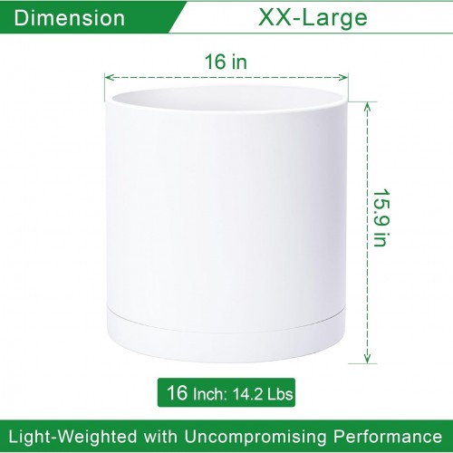 D’vine Dev 16 Inch White Plastic Planter Pots for Plant Pot with Drainage Hole and Seamless Saucers, 74-X-A-5