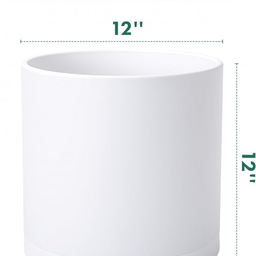 D’vine Dev 2 Pack 12 Inch Modern Plastic Plant Pots, Small Garden Planters for Plant with Drainage Holes and Saucers, White Color, 74-Z-P-1