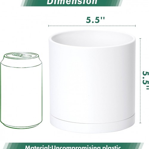 D’vine Dev 2 Pack 5.5 Inch Modern Plastic Plant Pots, Small Garden Planters for Plant with Drainage Holes and Saucers, White Color, 74-Z-H-1