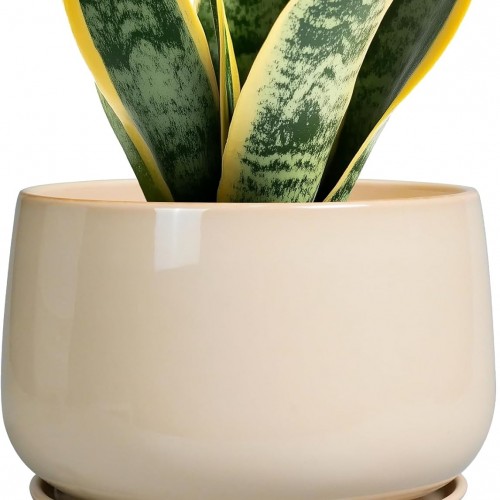 - Simple, elegant, and modern cylindrical straight round planter pot with saucer and drainage hole.