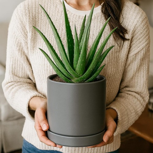 - Drainage holes and detachable/perfectly fitting ceramic saucers included.