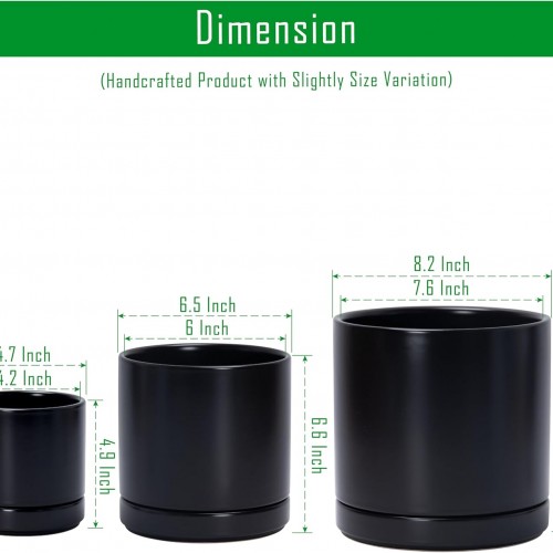 D’vine Dev 4 Inch & 6 Inch & 8 Inch, Set of 3 Round Ceramic Planter Pot with Drainage Hole and Saucer, Black, 94-T-M-2