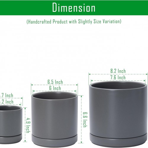 - Set of 3 Plant Pots: Large (8.2″ Diameter × 8.3″ Height), Medium (6.5″ Diameter × 6.6″ Height), and Small (4.7″ Diameter × 4.9″ Height), perfect for various plant types and arrangements.