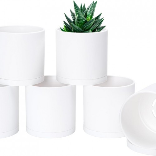 D’vine Dev 4 Pack 5 Inch Modern Plastic Plant Pots, Small Garden Planters for Plant with Drainage Holes and Saucers, White Color, 74-Z-G-2
