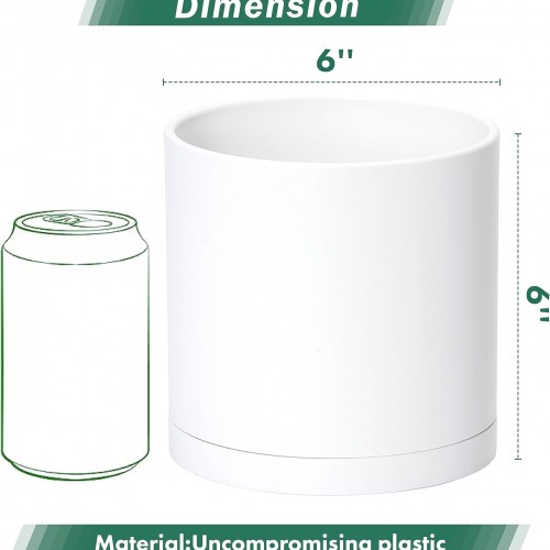 D’vine Dev 4 Pack 6 Inch Modern Plastic Plant Pots, Small Garden Planters for Plant with Drainage Holes and Saucers, White Color, 74-Z-J-2