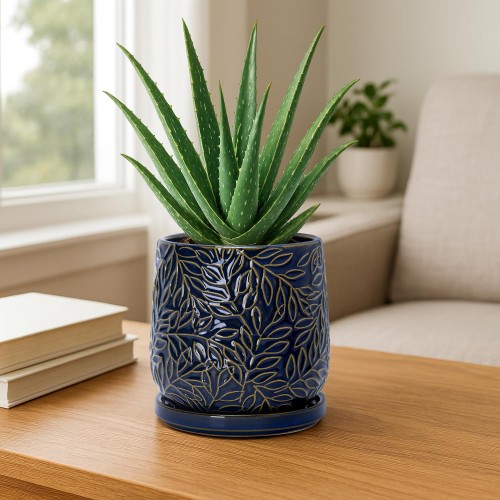 - Elegant Embossed Design: Featuring a sophisticated leaf-patterned texture, this planter pot adds a stylish, modern accent perfect for both indoor and outdoor décor.