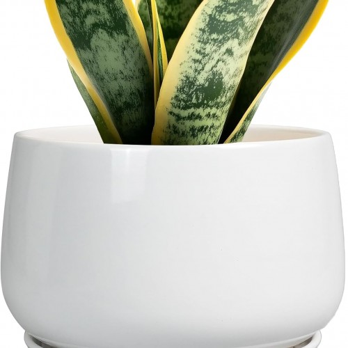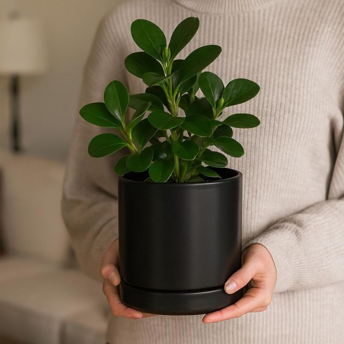 D’vine Dev 6.5 Inch Ceramic Planter Pot with Drainage Hole and Saucer, Indoor Cylinder Round Flower Pot, Black, 94-O-C-2