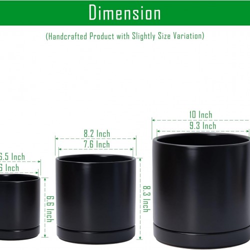 - Set of 3 Plant Pots: Large (10″ Diameter × 10.2″ Height), Medium (8.2″ Diameter × 8.3″ Height), and Small (6.5″ Diameter × 6.6″ Height), perfect for various plant types and arrangements.