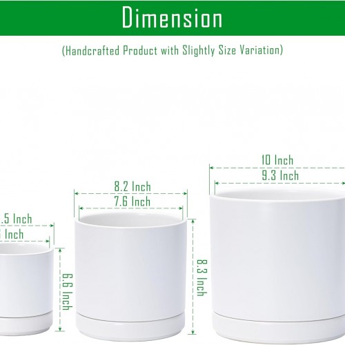 D’vine Dev 6 Inch & 8 Inch & 10 Inch, Set of 3 Round Ceramic Planter Pot with Drainage Hole and Saucer, White, 94-T-L-1