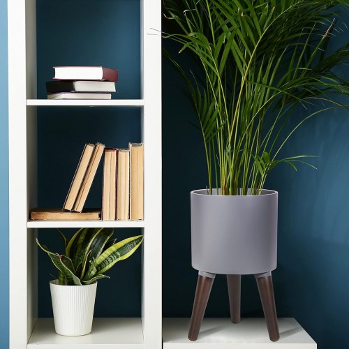 D’vine Dev 8 Inch Planter Pot with Stand, Mid-Century Tall Plant Pot with Legs for Indoor Plants, Small, Grey, 88-O-A-3
