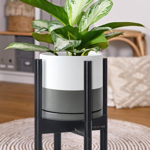 - A Complete Set: Mid-century ceramic planter, combined with a ebony wood stand that match perfectly together and looks great in anywhere.