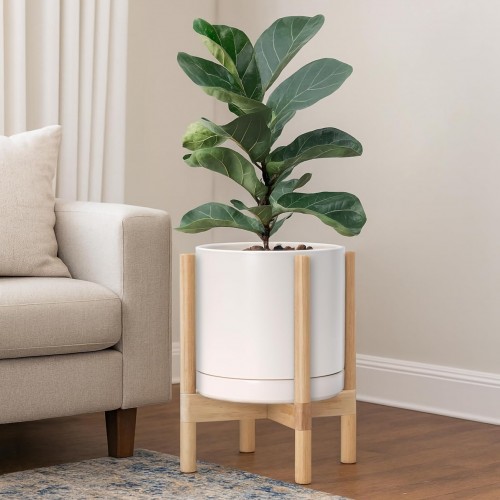 - A Complete Set: Mid-century ceramic planter, combined with a natural color, sculptural, solid wood stand that match perfectly together and looks great in anywhere.