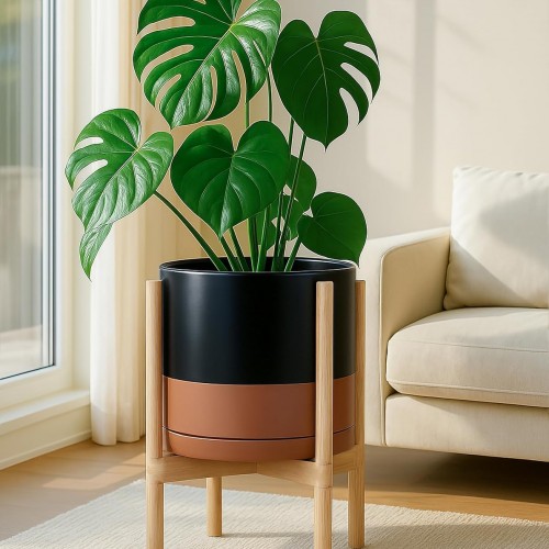 - A Complete Set: Mid-century ceramic planter, combined with a natural color, sculptural, solid wood stand that match perfectly together and looks great in anywhere.