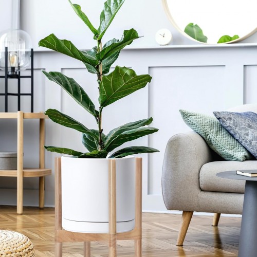 - A Complete Set: Mid-century ceramic planter, combined with a natural color, sculptural, solid wood stand that match perfectly together and looks great in anywhere.