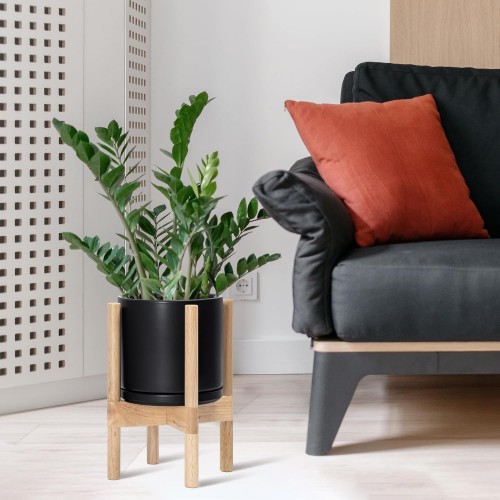 - A Complete Set: Mid-century ceramic planter, combined with a natural color, sculptural, solid wood stand that match perfectly together and looks great in anywhere.