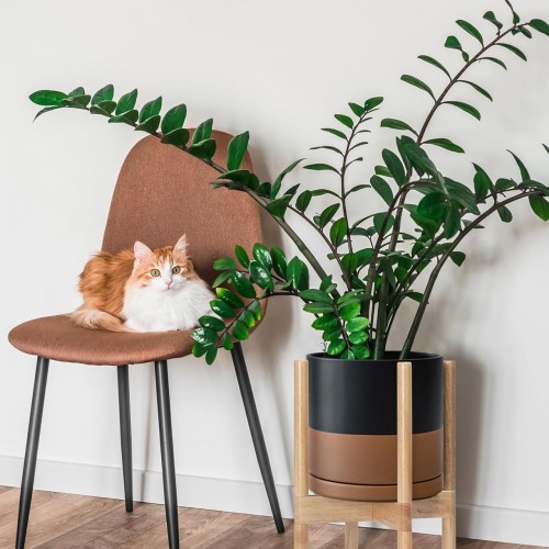 - Color : Black/Speckled Tan Pot + Natural Stand