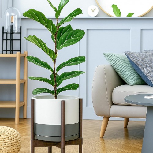 - A Complete Set: Mid-century ceramic planter, combined with a sculptural, solid wood stand that match perfectly together and looks great in anywhere.