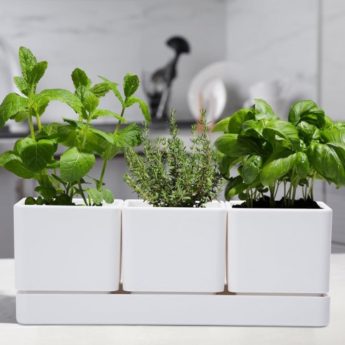 D’vine Dev Herb Garden Planter Set, Plastic Plant Pots with Drainage and Saucer, Indoor Succulent Cactus Vegetable Pot for Windowsill, Garden Balcony, White, Set of 1, 76-V-A-1