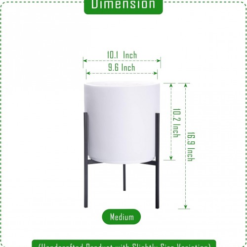 D’vine Dev Modern White Plants Pot Cylinder Planter with Heavy Duty Stand, Medium 10 Inch Pot, 16.3 Inch with Stand Height, 96-T-A-2