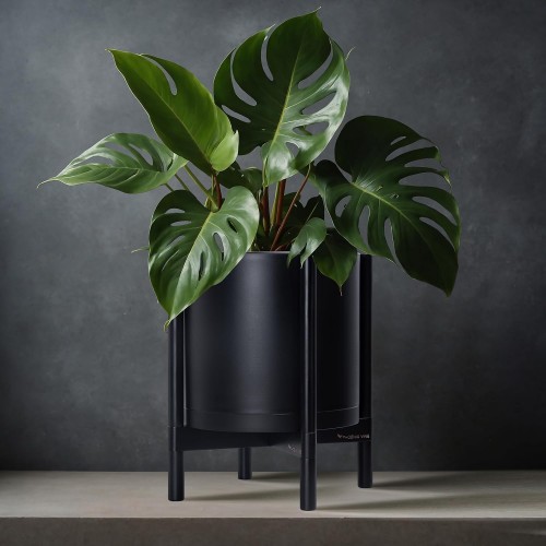 - A Complete Set: Minimalist plastic planter, combined with a sculptural, solid wood stand that match perfectly together and looks great in any home.