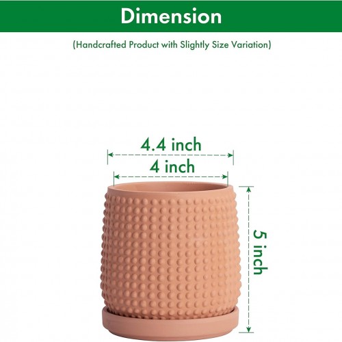 D’vine Dev Set of 2 Ceramic Plants Pots, 4 Inch Beaded Stoneware Flower Pot for Plants with Drainage Hole and Saucer, Terracotta, 27-E-Z-7