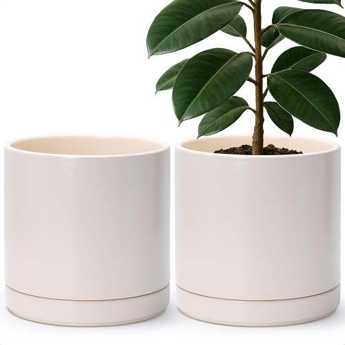 D’vine Dev Set of 2 Plants Pots, 6 Inch Ceramic Planter Pot for Plants with Drainage Hole and Saucer, Black/Speckled Tan, 94-V-C-7