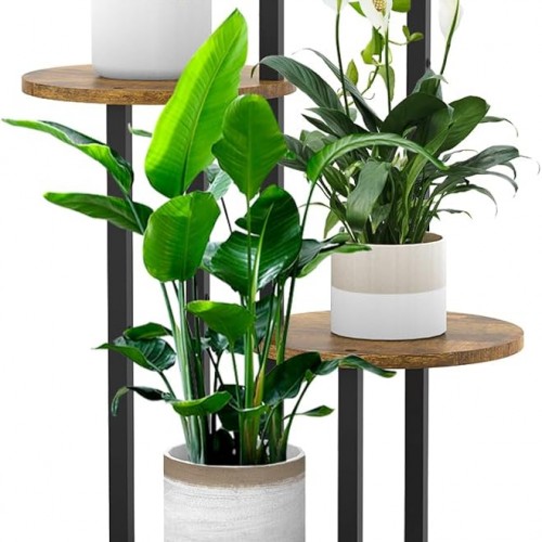 D’vine Dev Terracotta Planter with Natural Stand – 12 Inch Modern Round Flower Pot with Wood Planter Holder, Terracotta, 55-B-J-5